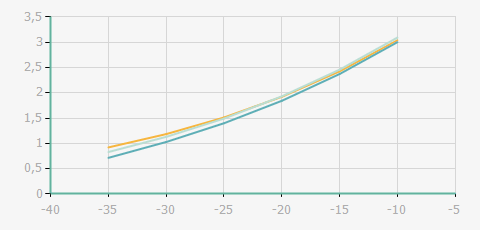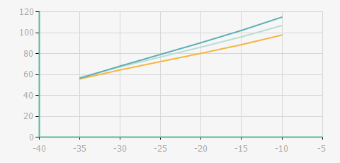 蒸發溫度 | 制冷量+/-5% | 能耗+/-5% | 現在能效+/-5% | 氣體流速+/-5% | 能效+/-7% | ||||