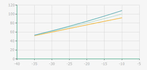 蒸發溫度 | 制冷量+/-5% | 能耗+/-5% | 現在能效+/-5% | 氣體流速+/-5% | 能效+/-7% | ||||