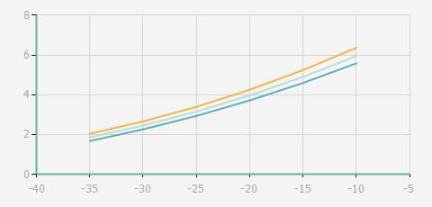 蒸發(fā)溫度 | 制冷量+/-5% | 能耗+/-5% | 現(xiàn)在能效+/-5% | 氣體流速+/-5% | 能效+/-7% | ||||