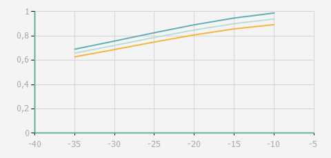 蒸發溫度 | 制冷量+/-5% | 能耗+/-5% | 現在能效+/-5% | 氣體流速+/-5% | 能效+/-7% | ||||