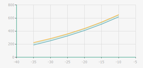 蒸發(fā)溫度 | 制冷量+/-5% | 能耗+/-5% | 現(xiàn)在能效+/-5% | 氣體流速+/-5% | 能效+/-7% | ||||