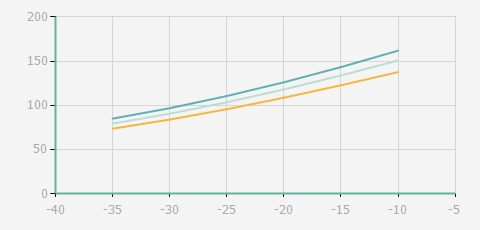 蒸發(fā)溫度 | 制冷量+/-5% | 能耗+/-5% | 現(xiàn)在能效+/-5% | 氣體流速+/-5% | 能效+/-7% | ||||
