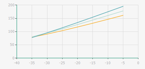 蒸發(fā)溫度 | 制冷量+/-5% | 能耗+/-5% | 現(xiàn)在能效+/-5% | 氣體流速+/-5% | 能效+/-7% | ||||