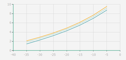 蒸發溫度 | 制冷量+/-5% | 能耗+/-5% | 現在能效+/-5% | 氣體流速+/-5% | 能效+/-7% | ||||