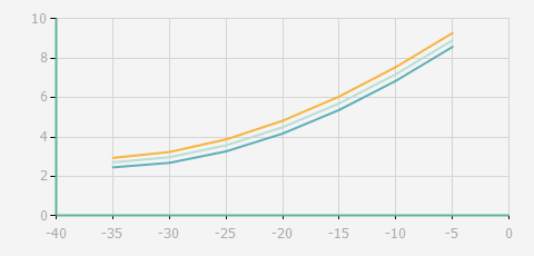 蒸發溫度 | 制冷量+/-5% | 能耗+/-5% | 現在能效+/-5% | 氣體流速+/-5% | 能效+/-7% | ||||