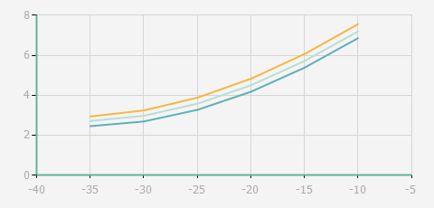 蒸發(fā)溫度 | 制冷量+/-5% | 能耗+/-5% | 現在能效+/-5% | 能效+/-7% | ||||