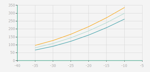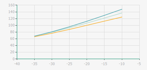 蒸發(fā)溫度 | 制冷量+/-5% | 能耗+/-5% | 現(xiàn)在能效+/-5% | 氣體流速+/-5% | 能效+/-7% | ||||
