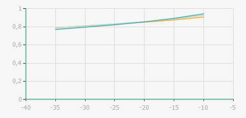 蒸發溫度 | 制冷量+/-5% | 能耗+/-5% | 現在能效+/-5% | 氣體流速+/-5% | 能效+/-7% | ||||