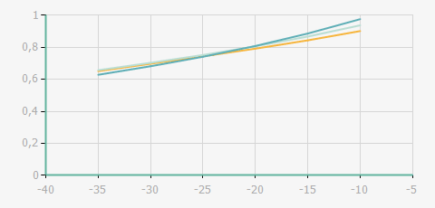 蒸發溫度 | 制冷量+/-5% | 能耗+/-5% | 現在能效+/-5% | 氣體流速+/-5% | 能效+/-7% | ||||