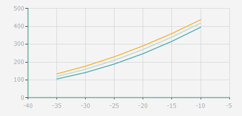 蒸發溫度 | 制冷量+/-5% | 能耗+/-5% | 現在能效+/-5% | 氣體流速+/-5% | 能效+/-7% | ||||