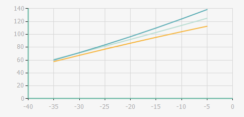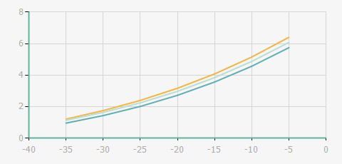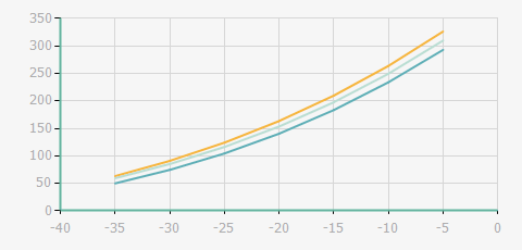 蒸發(fā)溫度 | 制冷量+/-5% | 能耗+/-5% | 現(xiàn)在能效+/-5% | 氣體流速+/-5% | 能效+/-7% | ||||