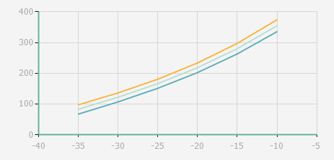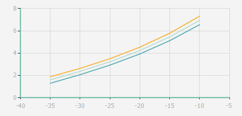 蒸發(fā)溫度 | 制冷量+/-5% | 能耗+/-5% | 現(xiàn)在能效+/-5% | 氣體流速+/-5% | 能效+/-7% | ||||