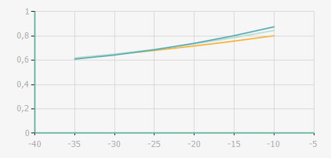 蒸發溫度 | 制冷量+/-5% | 能耗+/-5% | 現在能效+/-5% | 氣體流速+/-5% | 能效+/-7% | ||||