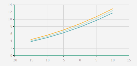 蒸發(fā)溫度 | 制冷量+/-5% | 能耗+/-5% | 現(xiàn)在能效+/-5% | 氣體流速+/-5% | 能效+/-7% | ||||