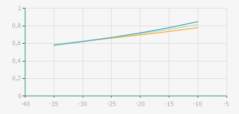 蒸發溫度 | 制冷量+/-5% | 能耗+/-5% | 現在能效+/-5% | 氣體流速+/-5% | 能效+/-7% | ||||