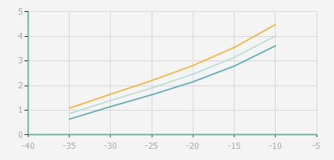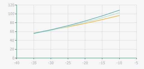 蒸發溫度 | 制冷量+/-5% | 能耗+/-5% | 現在能效+/-5% | 氣體流速+/-5% | 能效+/-7% | ||||
