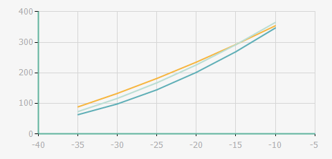 蒸發(fā)溫度 | 制冷量+/-5% | 能耗+/-5% | 現(xiàn)在能效+/-5% | 氣體流速+/-5% | 能效+/-7% | ||||