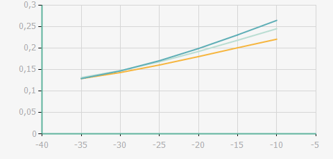蒸發(fā)溫度 | 制冷量+/-5% | 能耗+/-5% | 現(xiàn)在能效+/-5% | 氣體流速+/-5% | 能效+/-7% | ||||