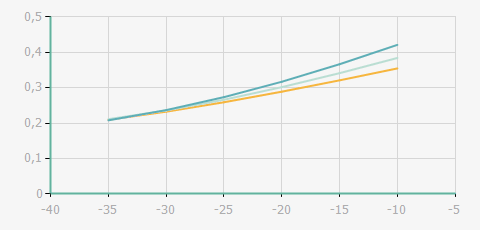 蒸發溫度 | 制冷量+/-5% | 能耗+/-5% | 現在能效+/-5% | 氣體流速+/-5% | 能效+/-7% | ||||