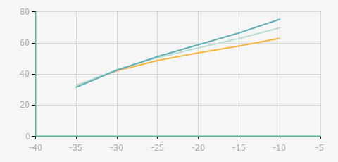 蒸發溫度 | 制冷量+/-5% | 能耗+/-5% | 現在能效+/-5% | 氣體流速+/-5% | 能效+/-7% | ||||