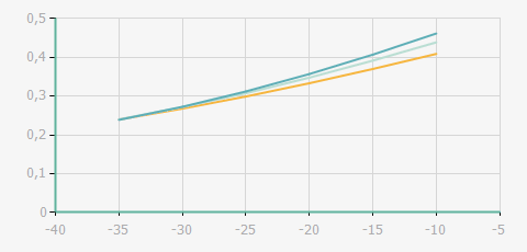 蒸發溫度 | 制冷量+/-5% | 能耗+/-5% | 現在能效+/-5% | 氣體流速+/-5% | 能效+/-7% | ||||