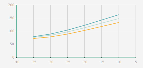 蒸發(fā)溫度 | 制冷量+/-5% | 能耗+/-5% | 現(xiàn)在能效+/-5% | 氣體流速+/-5% | 能效+/-7% | ||||