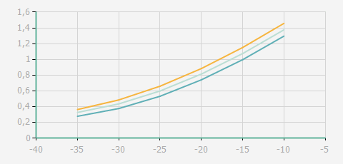 蒸發溫度 | 制冷量+/-5% | 能耗+/-5% | 現在能效+/-5% | 氣體流速+/-5% | 能效+/-7% | ||||