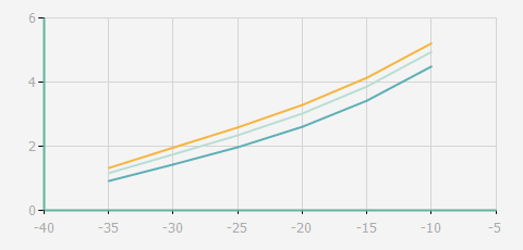 蒸發溫度 | 制冷量+/-5% | 能耗+/-5% | 現在能效+/-5% | 氣體流速+/-5% | 能效+/-7% | ||||