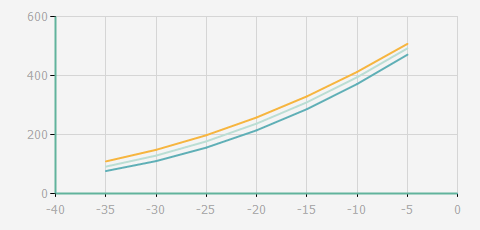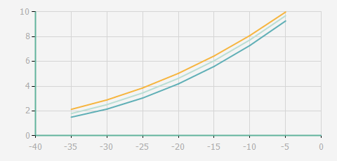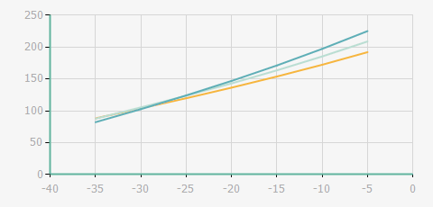 蒸發溫度 | 制冷量+/-5% | 能耗+/-5% | 現在能效+/-5% | 氣體流速+/-5% | 能效+/-7% | ||||