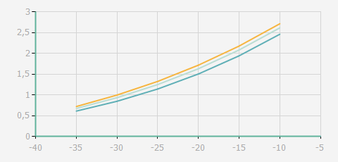 蒸發溫度 | 制冷量+/-5% | 能耗+/-5% | 現在能效+/-5% | 氣體流速+/-5% | 能效+/-7% | ||||